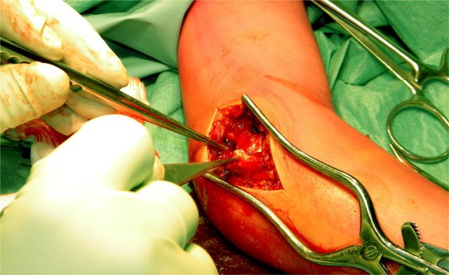 On the lateral side this can result in a dislocation or a fracture of the radius with or without involvement of the olecranon.