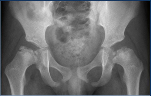 This is an uncommon condition in which the femoral heads show delayed ossification and fragmentation, most often occurring bilaterally.
