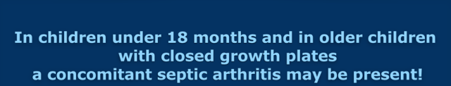 In infants and children with closed growth plates, the growth plate does not act as a barrier and infection may spread to the epiphysis and joint.